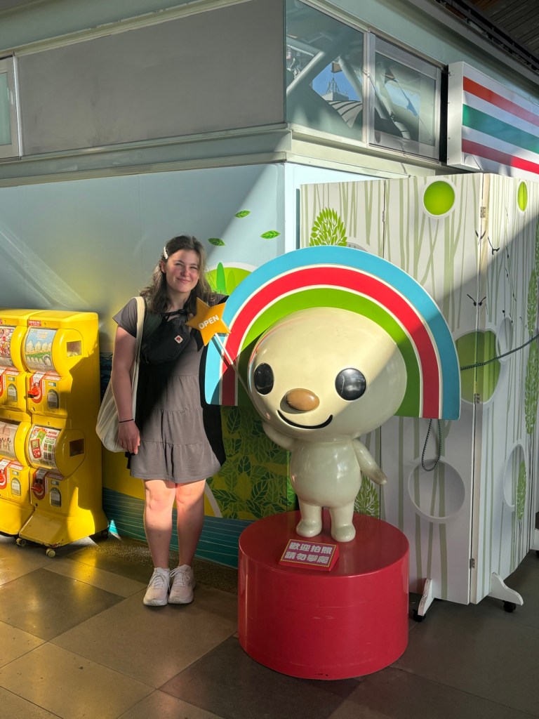 Good morning from the Taitung train station! Here is me with the cutie 7-Eleven mascot. Onigiris for breakfast and ocean views as we headed further down the east coast and then crossed over to the west side.
