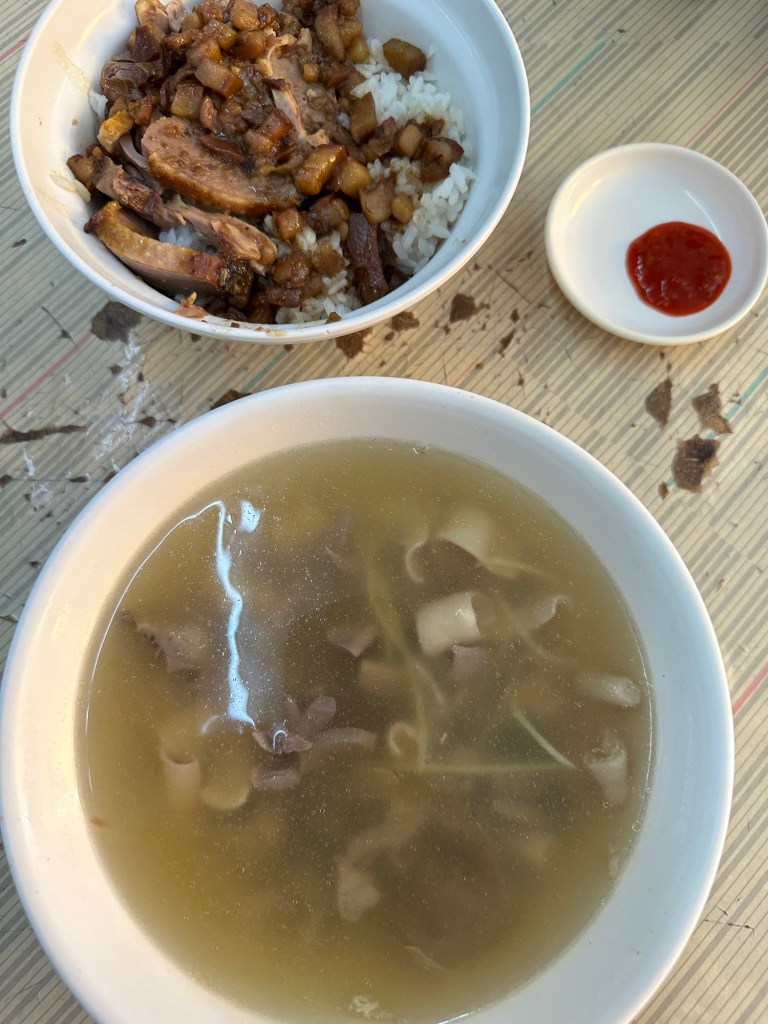 For lunch we had duck and pork rice and duck soup. Pork rice is a classic Taiwanese dish, but this duck was a little different. Braised with spices, the meat on top was tender and juicy with delicious flavorful rice underneath. We also had duck soup, with a gingery broth and mystery bits of meat in it. The broth felt healing, and the mystery bits were fun texturally.