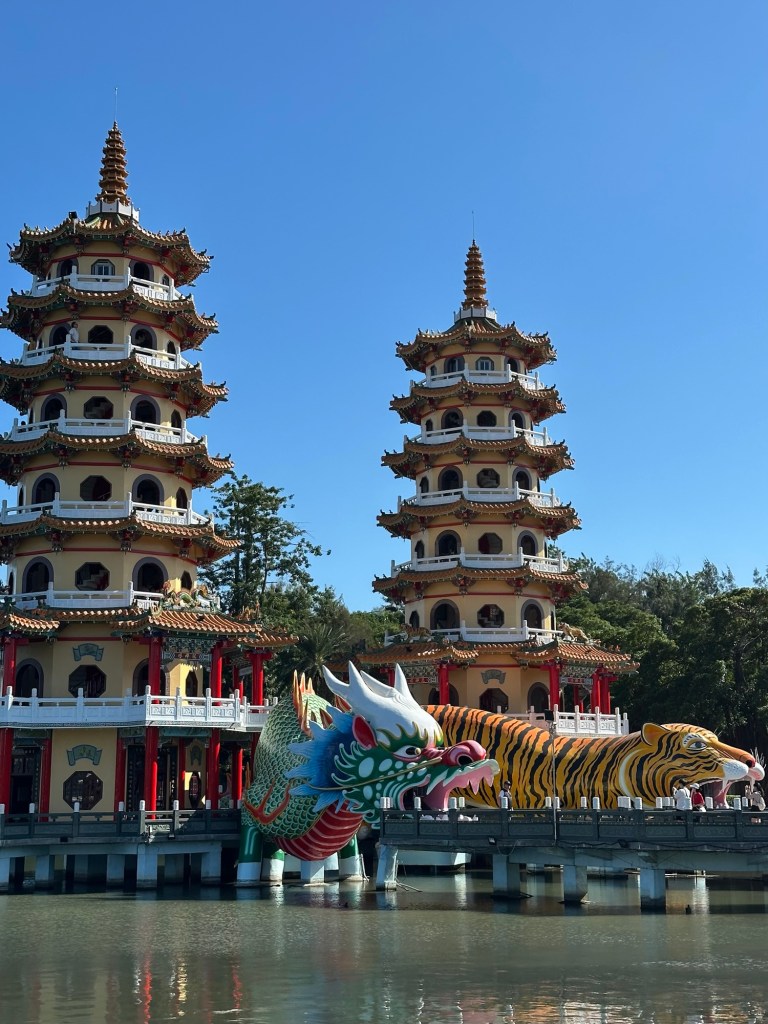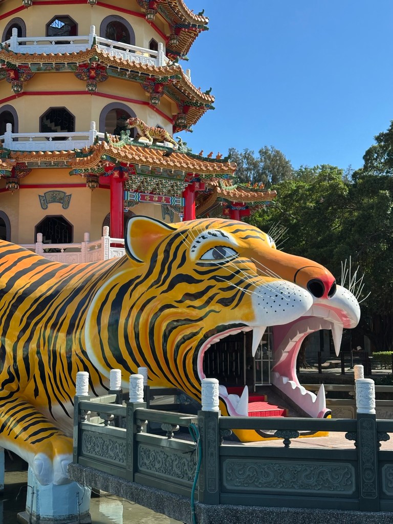 Lotus pond is surrounded by a walking path and is home to fish, turtles, and many types of birds. We walked into the mouth of the dragon and, after exploring the pagodas, exited through the tiger (the other way around would be bad luck).