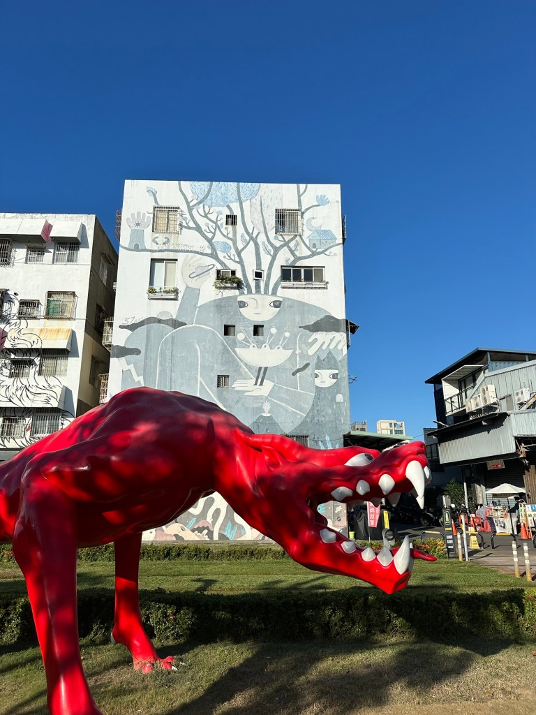 We passed miles and miles of some sort of aquaculture and so many palm trees, and said goodbye to the coastal mountains along the east side of the country. we arrived in Kaohsiung and dropped our bags, then got in a long line (we’ve learned to trust this as a good sign) for lunch.