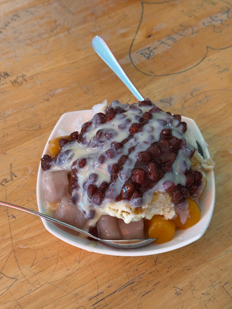 After arriving back in Kaohsiung, we had a more traditional shave ice with taro and red bean to cool us down.