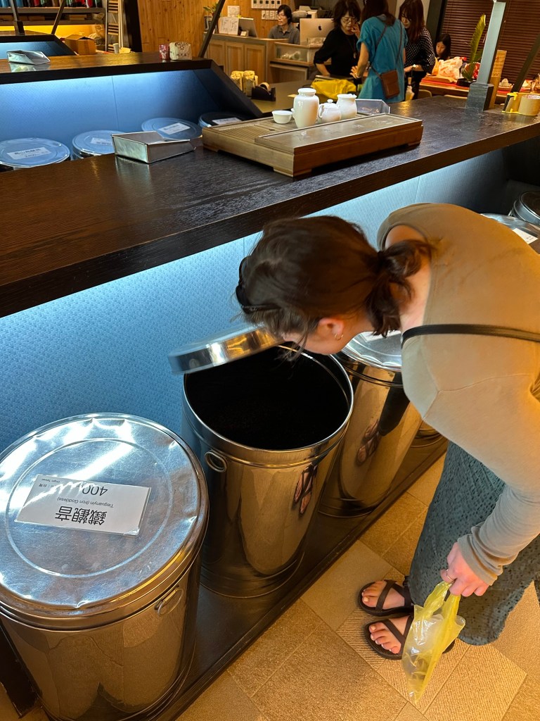We continued on to a nearby street in an older neighborhood, and were rewarded with a walk through an indoor market as well as blocks and blocks of medicine and tea shops. Since Taiwan is a huge grower of oolong particularly, I bought some tea nearby, and we both got to smell all the different grades, or qualities of each variety.