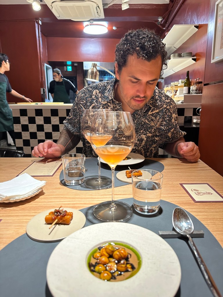 Each course focused on a specific ingredient. My favorite was a poached trout dish with dill, peas, and galangal oil. Jensen’s was the squash dish which came with a spicy tteokbokki made from pumpkin, a paste made from the seeds, and a sage oil. We had a pairing of delicious natural wines. Quite a different price range than the majority of our meals in Taiwan, which were mostly under ten dollars for both of us, but so incredibly worth it.